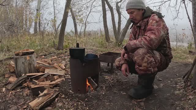Живём с женой на стане, вдали от города. Готовим на костре. Баня из палатки.