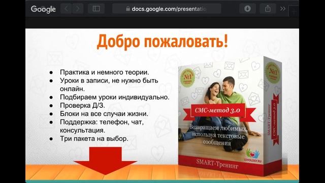 Ссылка на тренинг СМС-метод 3.0: https://goo.gl/upNedq Ссылка на консультацию: https://goo.gl/N6d58s Книга "Как вернуть любимого человека, используя СМС сообщения" https://goo.gl/LP5vjL Все видео доступны на моем канале в youtube https://www.youtube.com/user/chikankova Мои страницы в соцсетях: http://vk.com/o.d.chikankova https://www.facebook.com/o.chikankova http://ok.ru/chikankova