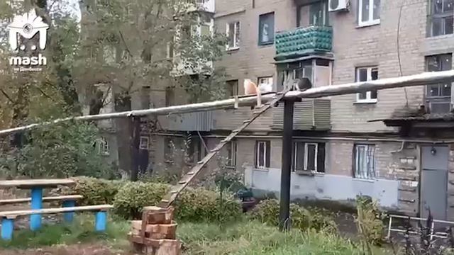 В Донецке котолюбитель сделал специальную лесенку для котиков, чтобы они могли греться на трубах.