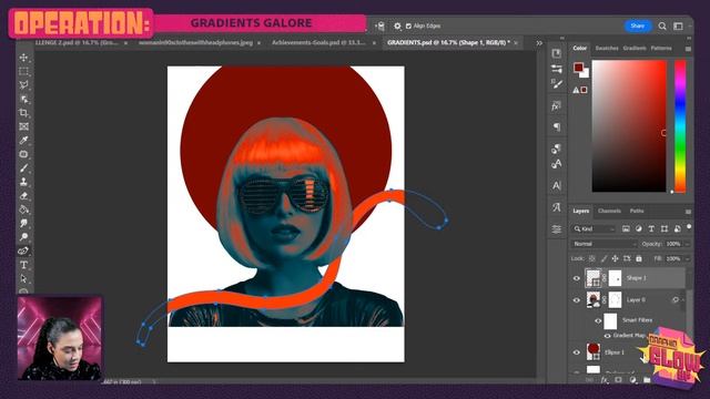 Want to improve your Photoshop game and learn how to use vibrant hues & colors? Join VooDoo Val and learn to create a surreal poster using your favorite new techniques in this colorful episode!. Today we’ll explore the magic of gradients with custom brushes, photos, gradient maps, replace color and blending modes! Host VooDoo Val is a Creative Streamer & Community Moderator for Adobe Live based in Sacramento: https://www.behance.net/voodooval ----- Join us LIVE on Behance: https://www.behance.net/adobelive 00:00 Start 03:10 Explanation for Graphic Glow Up 05:27 Using Adobe Color to find colors/gradient map 07:49 Importing images from the CC Library - creating smart objects 11:02 Cleaning up the portrait 16:31 Creating a gradient map w/custom palette 22:25 Save your work 24:09 Working on a cool background w/ shapes - using the Pen Tool for shapes 28:06 More shapes for the foreground 32:24 Val talks about her work with Star Wars! 36:39 Adding more tube shapes into the background 41:47 Rasterizing layers and prepping for texture 42:36 Painting textures - locking transparency 47:09 Adding some illustrative elements into the composition 52:16 Achievements - rewarding points Subscribe to Adobe Creative Cloud: https://www.youtube.com/AdobeCreativeCloud?sub_confirmation=1 Try Adobe Photoshop: https://www.adobe.com/products/photoshop.html Download Adobe Express: https://adobe.ly/3rDM7M8 Learn More: https://www.adobe.com/products/photoshop/explore.html?sdid=H822XMCW&mv=social&mv2=ownsoc-org About Adobe Creative Cloud: Adobe Creative Cloud gives you the world's best creative apps so you can turn your brightest ideas into your greatest work across your desktop and mobile devices. Connect with Adobe Creative Cloud: Twitter: https://twitter.com/creativecloud LinkedIn: https://www.linkedin.com/showcase/adobe-creative-cloud/ Facebook: https://www.facebook.com/adobecreativecloud Instagram: https://www.instagram.com/adobecreativecloud/ #CreativeCloud #Adobe #AdobePhotoshop How to Use Hues & Vibrance in Photoshop! | Adobe Photoshop Tutorial with VooDoo Val | Creative Cloud https://youtu.be/gGLuAD1zKlc