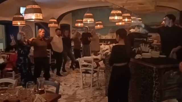 Греческие танцы в греческом ресторане Порто Миконос