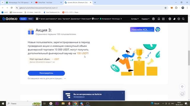 В данном видео показал как каждый из вас может получить 120$ без риска. Как заработать на криптовалюте. 🔵Gate - https://www.gate.io/signup/BVhEU1hb?ref_type=103 🟢 Телеграм канал - https://t.me/moneydayyy_tg/845 Если есть вопросы, обязательно задавайте в комментариях под этим видео или в телеге, всегда поможем. Еще биржи на которых я зарабатываю: 🔸ByBit - https://bit.ly/3HDm0wx 🔸Binance - https://bit.ly/3JWPu8C 🔸Bitget - https://bit.ly/3VYgMB0 🔸Mexc - https://bit.ly/3StT9go #какзаработать #какзаработатьвинтернете #заработок #халява #120долларов #120USDT #заработоккриптовалюты #криптовалюта #крипта