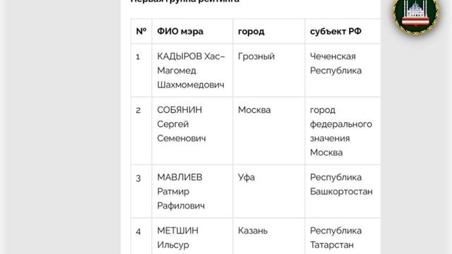 МЭР ГРОЗНОГО ХАС-МАГОМЕД КАДЫРОВ ЗАНЯЛ ПЕРВОЕ МЕСТО В «НАЦИОНАЛЬНОМ РЕЙТИНГЕ МЭРОВ» ПО ИТОГАМ 2025
