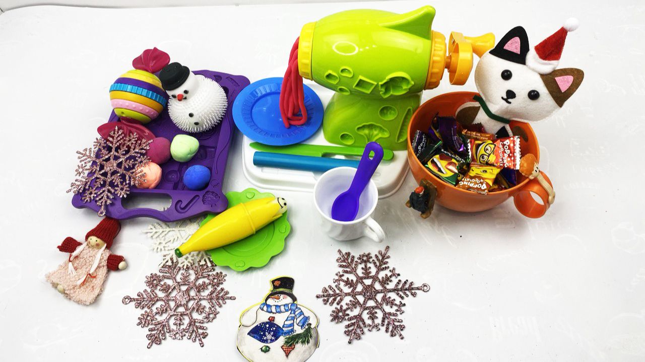 Мультики для детей. Новогодняя игрушечная мясорубка. Пропускаем пластилин. Мультики для малышей