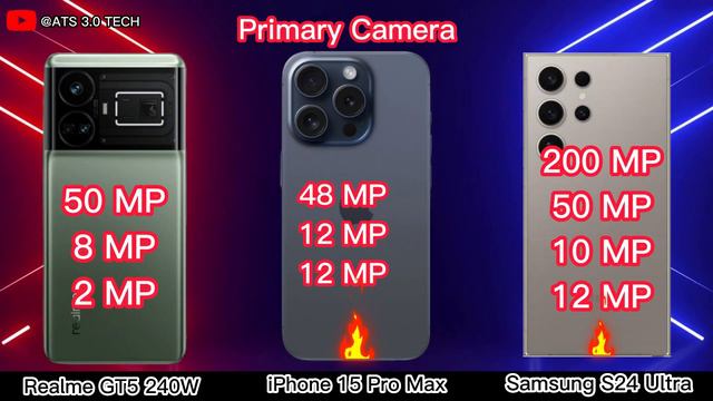 samsung galaxy s24 ultra vs iphone 15 pro max vs Realme GT5 240W