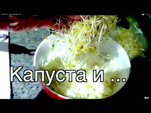 Салат из Капусты с Майонезом, Сметаной и Проросшими Ростками Люцерны. Что еще можно добавить в салат из капусты? Иногда я делаю без ростков, заменяя их укропом или другой зеленью. В составе свежей капусты имеются: витамины А, В1, В2, В5, С, К, РР, а также калий, кальций, магний, цинк, марганец, железо, сера, йод, фосфор, редкий витамин U, фруктоза, фолиевая кислота и пантотеновая кислота и клетчатка. В Люцерне тоже огромное количество витаминов. Она улучшает иммунитет и обладает протвовоспалительными свойствами. Это реально - вкусно и быстро! Делается за 5 минут ;)