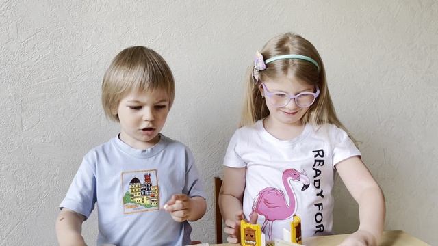 Таня и Мартин собирают лего Микки Маус ферма