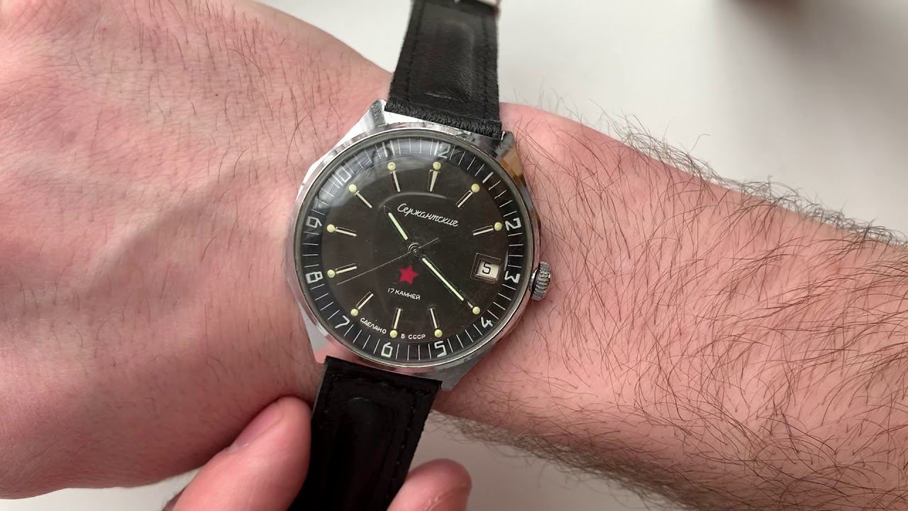 Видеообзор на Сержантские часы 2414 с календарем 1980-х годов ЧЧЗ