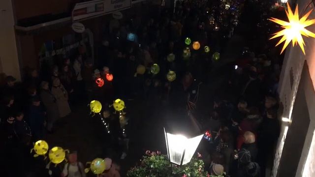 Die Kath. Grundschule Wiesenstraße zieht beim Martinsumzug 2019 durch die Ellenstraße.