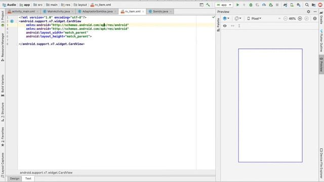 Reproducir Audio de recursos con MediaPlayer, CardView, RecyclerView en Android Studio