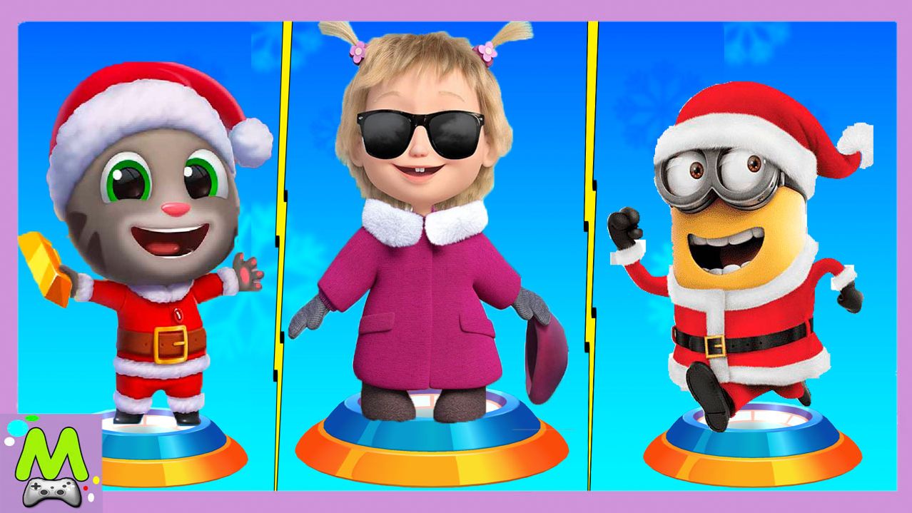 Маша и Медведь против Санта-Клаусов.Говорящий Том и Миньоны против Маши в Гонках на Скорость