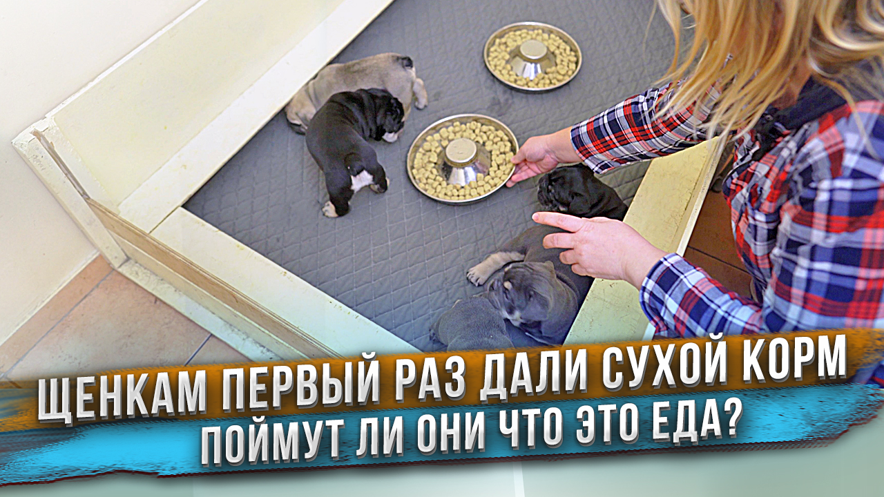 Щенкам Английского Бульдога от Тигры и Темы уже больше месяца и вот и пришло время давать им первый прикорм. Мы пару часов размачиваем сухой корм и в таком виде даем щенкам первый раз в жизни попробовать отличную от молока матери еду. А еще в этом видео заглянем на стройку второго здания питомника и посмотрим как там продвинулась стройка.