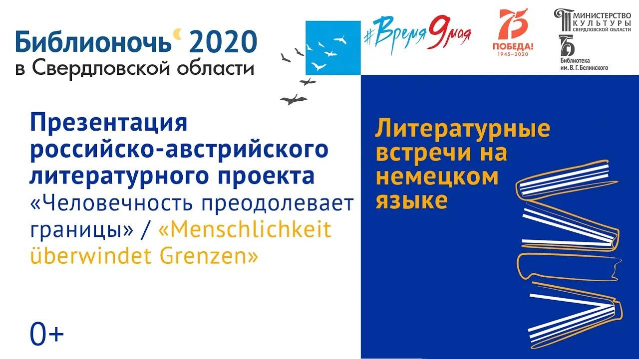 25 апр. 2020 г. Библионочь 2020 онлайн Презентация российско-австрийского литературного проекта «Человечность преодолевает границы» / «Menschlichkeit überwindet Grenzen». Свердловская областная универсальная научная библиотека им. Белинского http://book.uraic.ru/ сайт https://vk.com/club6745014 VK