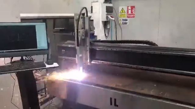 Material: S355 Type: Metal Plate Source: Hypertherm Powermax 105A Feed: 400 mm/min Thickness: 25mm Automatic force feedback for height control.