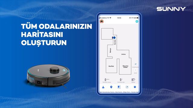Sunny Hero Power Robot Süpürge, evinizin en ulaşılamaz köşelere ulaşarak kusursuz bir temizlik yapar. Sunny Hero uygulamasına bağlayarak kontrol sağlayabilirsiniz. Akıllı Temizlik, Bölgesel Temizlik ve daha fazlasını uygulama üzerinden yapabilirsiniz. Uygulama üzerinden dilediğiniz zaman diliminde çalışması için ayarlayabilirsiniz. Sunny Hero Power Robot Süpürge LDS lazer navigasyon ile eksiksiz bir temizlik haritası oluşturulur. Türkçe sesli bilgilendirmesi sayesinde kahramanınızın tüm komutlarını rahatlıkla anlayabilir ve kontrol edebilirsiniz. 2000 PA emiş gücüne sahiptir. Kahramanımız yüksek emiş gücü sayesinde evinizdeki tüm düşmanları içerisine hapseder. Süpürme ve silme modu sayesinde temizlik artık daha kolay! 2 cm’ye kadar olan tüm engelleri kolaylıkla aşar. Neredeyse hiç bir engele takılmaz. %20 şarjın altına düştüğünde şarj istasyonuna geri döner. Pili dolduktan sonra temizliğe kaldığı yerden devam eder. 60 dB altında düşük ses seviyesi sayesinde rahatsızlık vermeden temizliğini yapar.