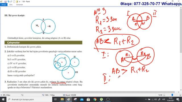 Riyaziyyat 6-cı sinif. Səhifə 144. İki çevrənin qarşılıqlı vəziyyəti / Aynurə Abdullayeva