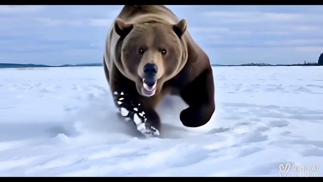 Медведь защищает своих медвежат