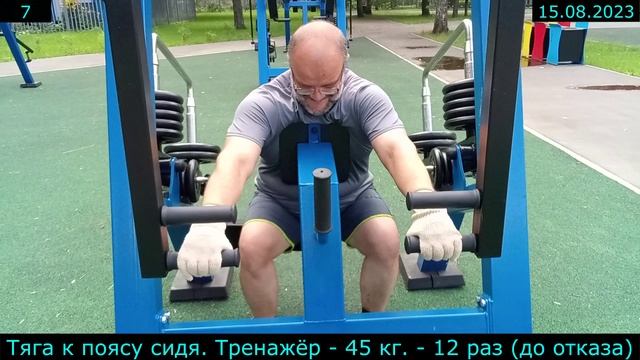 15.08.2023 - Тяга к поясу сидя. Тренажёр - 45 кг. - 12 раз (до отказа)