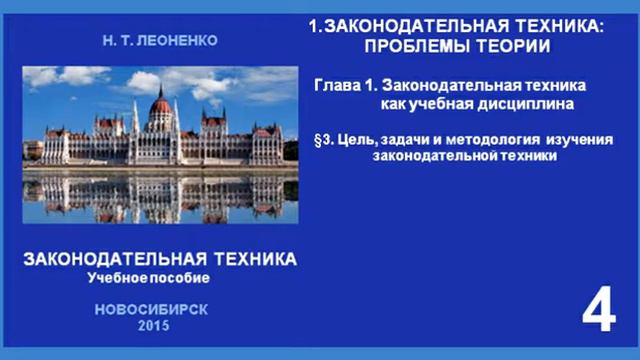 Аудиокнига Н. Т. Леоненко ЗАКОНОДАТЕЛЬНАЯ ТЕХНИКА Учебное пособие 1.Законодательная техника: проблемы теории Тема 1. Законодательная техника как учебная дисциплина §3. Цель, задачи и методология изучения законодательной техники Студия аудиокниги «ГЛАГОЛЬ», 2018 ©