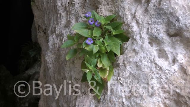 A gesneriad (Microchirita sericea) flower growing on a karst limestone hill in Perak, Malaysia.