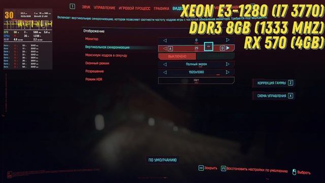 Запуск Cyberpunk 2077 на I7 3770 (Xeon E3-1280)/DDR3 8GB/RX 570 (4GB)