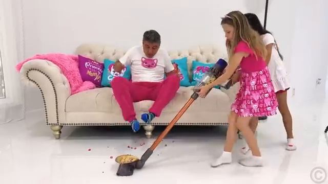 Папа придумал как помочь Насте и Эвелин убраться в комнате