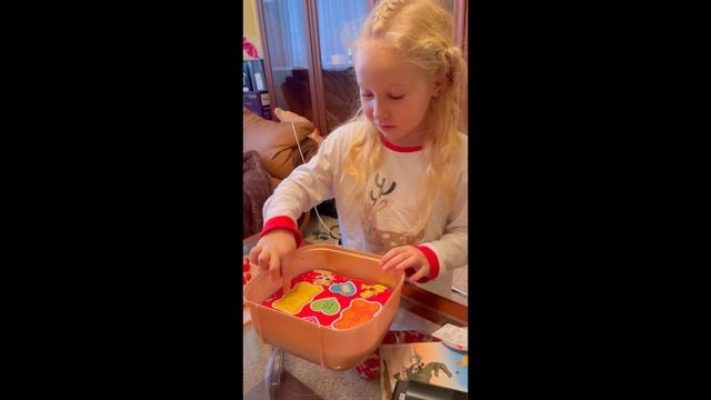 Арина распаковывает подарок от Деда Мороза?