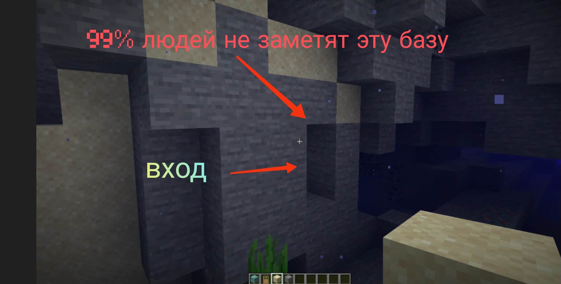Построил секретную базу под водой в Minecraft.