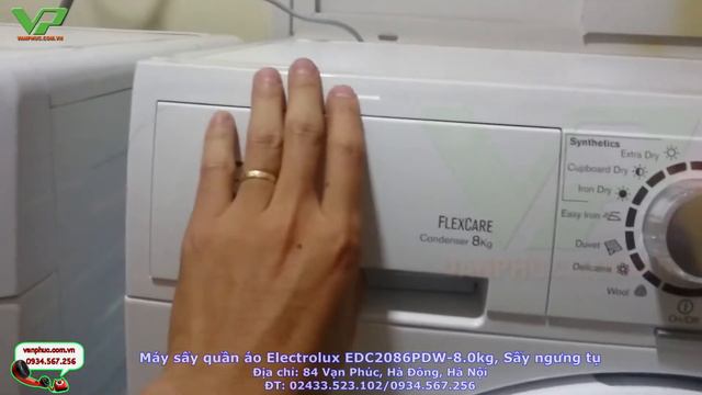 Máy sấy quần áo Electrolux EDC2086PDW với công nghệ sấy ngưng tụ, công suất sấy 8.0kg, Máy nhập khẩu nguyên chiếc từ Ba Lan bởi tập đoàn Electrolux Thủy Điển. Electrolux EDC2086PDW có nhiều chương trình sấy phù hợp với từng chất liệu vải. Lồng sấy lớn có thể sấy được hầu hết các loại quần áo, chăn, ga, vỏ gối. Sản phẩm với công nghệ sấy rất an toàn, tiết kiệm điện năng, chắc chắn là sản phẩm đáng tin dùng. Chi tiết sản phẩm quý khách có thể xem tại: http://vanphuc.com.vn/may-say-quan-ao/Electrolux-EDC2086PDW.htm # ----------------------------------------------------------------------------------------------------------------------------------------- +) Thông số kỹ thuật của sản phẩm: Loại sản phẩm: Máy sấyngưng tụ Khối lượng 1 lần sấy: 8 kg Số chương trình sấy: 05 chương trình Chức năng chính: Chương trình sấy đặc biệt: Sấy nhanh 38 phút Sấy đảo chiều: Có Điều khiển: Điện tử Màn hình hiển thị : Có Ứng dụng: Dùng trong gia đình, cửa hàng giặt là Cảm biến độ ẩm: Tự động ngừng máy sấy Chế độ hẹn giờ sấy: Có Công suất điện: 2250W Điện áp 220-240V/50Hz Kích thước(rộng x sâu x cao) 600 x 620 x 850 mm Hãng sản xuất: Electrolux-Thụy Điển Sản xuất tại: Ba Lan Bảo hành: 24 tháng ------------------------------------------------------------------------------------------------------------------------------------- Trong các dòng máy sấy quần áo Electrolux chính hãng có mặt trên thị trường Việt Nam hiện nay, máy sấy quần áo Electrolux EDC2086PDW là model duy nhất sử dụng công nghệ sấy ngưng tụ với nhiều ưu điểm vượt trội. Máy không xả ra khí nóng ẩm, hơi ẩm trong quần áo sẽ được ngưng tụ lại thành nước chảy vào khay chứa ở phía trên hoặc chảy trực tiếp ra bên ngoài qua đường ống dẫn nước ở phía sau máy. Công nghệ sấy ngưng tụ cho phép máy sấy quần áo có thể sấy khô được những chất liệu đặc biệt, một số loại vải cao cấp cần được bảo vệ, đồ thuộc da, lông vũ... mà không làm ảnh hưởng đến chất lượng đồ sấy. Máy hoạt động êm hơn, an toàn và tiết kiệm điện năng hơn những sản phẩm cùng loại sử dụng công nghệ sấy thông hơi. Công nghệ sấy thông hơi cũng không làm ẩm không gian xung quanh đặt máy sấy. Nhược điểm của dòng máy sử dụng công nghệ này là sấy chậm hơn và giá thành khá cao so với các sản phẩm cùng mức công suất sấy. == Ngoài ra quý khách có thể tham khảo máy sấy quần áo Electrolux được sử dụng phổ biến nhất tại địa chỉ: http://vanphuc.com.vn/may-say-quan-ao/Electrolux-EDV7552.html === Tham khảo các dòng máy sấy quần áo cao cấp khác tại địa chỉ: http://vanphuc.com.vn/dien-lanh/may-say-quan-ao Mọi chi tiết xin quý khách vui lòng liên hệ: Trung tâm điện máy Vạn Phúc Địa chỉ: Số 85 Láng Hạ-Ba Đình-Hà Nội Showroom: Số 84 Vạn Phúc-Hà Đông-Hà Nội ĐT: 02433.523.102/0938.751.256 Website: Vanphuc.com.vn. Email: Lienhe@vanphuc.com.vn
