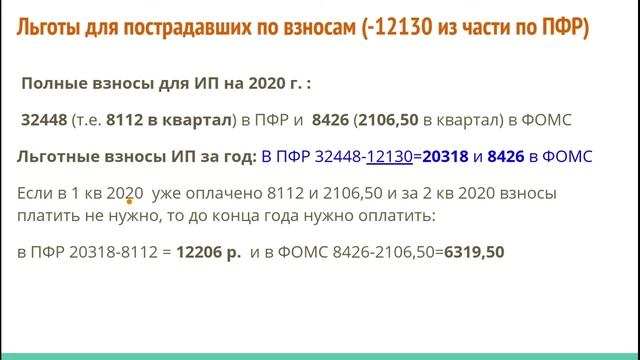 Сколько взносов за себя платить пострадавшему ИП в 2020 г