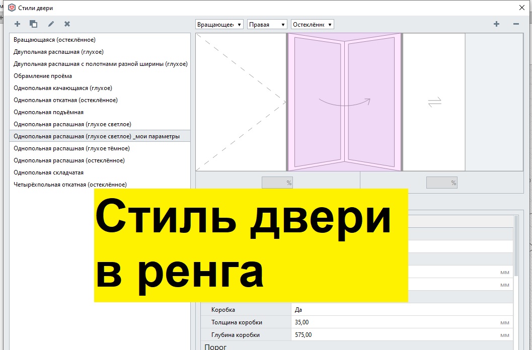 Стили двери в Renga - создание нового стиля и настройка параметров