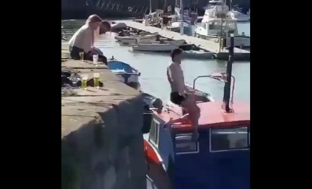 Мужик свалился с катера несколько раз. #прикол #фейл #падение #неудача #пьяный