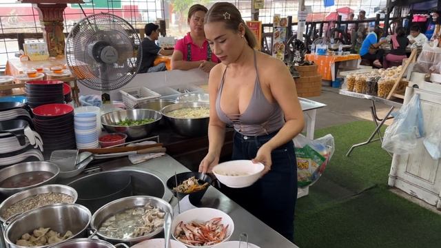 Самая красивая леди готовит лапшу со свининой - Тайская уличная еда