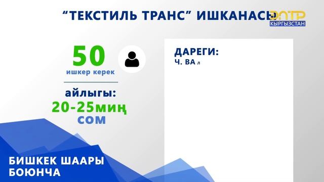 БИШКЕК ШААРЫНДАГЫ ТИГҮҮЧҮ ЦЕХТЕРГЕ ЖУМУШЧУЛАР КЕРЕК