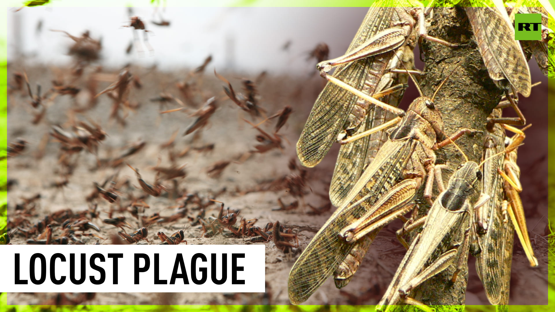 A plague of locusts has hit Afghanistan, devastating eight provinces in the country's north and northeast. The Food and Agriculture Organization of the United Nations has warned that the infestation could result in massive crop losses, threatening Afghanistan's food security. -------------------------------------------------------------------------------------------------- Freedom over censorship, truth over narrative. Follow us on Facebook: https://www.facebook.com/RTnews Follow us on Telegram: t.me/rtnews Follow us on Twitter: https://twitter.com/RT_com