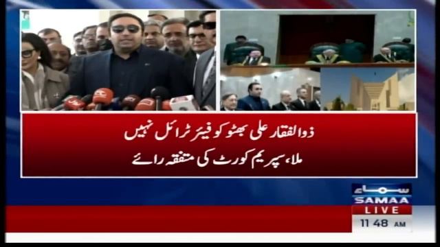 #Samaatv #imrankhan #barristergoharalikhan #pti #election2024 #nawazsharif #supremecourt #supremecourt #chiefjustice #qazifaizisa #ppp #bilawalbhutto #asifzardari #zulfiqaralibhutto Bilawal Bhutto Speak Out After Supreme Court Verdict On Zulfiqar Ali Bhutto Case | SAMAA TV SAMAA TV is the top Pakistani news channel covering national news from a diverse array of fields -- from politics and current affairs, business and sports to international, entertainment and culture. The channel aims at providing factual, in-depth and latest news as and when it happens. Tune in to SAMAA TV to stay updated, whether at home or on the go, on all things current and relevant. ➽ Subscribe to Samaa News ➽ https://bit.ly/2Wh8Sp8 ➽ Watch Samaa News Live ➽ https://bit.ly/3oUSwAP Stay up-to-date on the major news making headlines across Pakistan on SAMAA TV’s top-of-the-hour segment. For in-depth coverage watch the bulletins. SAMAA TV is Pakistan’s first private satellite news channel that provides live transmission simultaneously from five cities of Pakistan: Karachi, Lahore, Islamabad, Quetta and Peshawar. SAMAA’s live news bulletins, incisive political talk shows and a wide range of programs including sports, social issues and infotainment has enabled it to position itself among the top tier news and current affairs channels of Pakistan. SAMAA Network : SUBSCRIBE to get the latest SAMAA News content: https://bit.ly/2Wh8Sp8 ► SAMAA News YouTube Channel: https://bit.ly/2Wh8Sp8 ► SAMAA Originals YouTube Channel: https://bit.ly/32c1qO3 ► SAMAA MONEY YouTube channel: https://bit.ly/2EkiglJ ► SAMAA SPORTS YouTube channel: https://bit.ly/34jyINP ► SAMAA ISLAMIC YouTube channel: https://bit.ly/2LT1WMF Keep watching SAMAA! For latest Urdu News updates visit: http://www.samaa.tv http://www.facebook.com/samaatvnews http://www.twitter.com/samaatv http://www.instagram.com/samaatv Punjab Govt | CM Punjab | Punjab Assembly | Bilawal Bhutto | PM Anwar ul Haq | Imran Khan | News | Breaking News | Latest News | News Headlines | Prime Time Headlines | Samaa News | News Channel | Live News | Breaking News | Latest News | Pakistan Breaking News | Breaking News Today | News Headlines | Headlines News | Pakistan News | Headlines | Live News | News Updates | Samaa news live | Samaa | Samaa Live | Samaa News Live Streaming | Samaa Youtube Channel | Samaa Channel | Samaa Tv Live | Samaa Tv | Samaa Live Tv | Samaa Live News