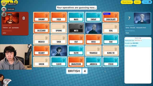 Disguised Toast plays Codenames with Jodi, Sydney, John, Brodin, Tenzin, Danny, Celine. 08/26/2022