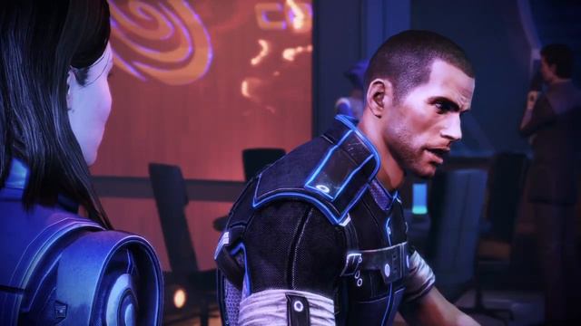 Mass Effect 3 Ashley and Shepard taking shots at the bar and brain check ;)