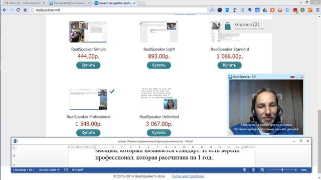 Здравствуйте, дорогие друзья! Наверняка вы уже заходили на наш сайт и видели, что у нас есть 5 версий лицензии специально для Вас. Так вот, я сегодня хотел бы Вам рассказать более подробно какие это лицензии и как они отличаются друг от друга. На самом деле отличий не так много: это продолжительность работы ключа, который позволяет пользоваться всеми благами высококачественного перевода речи в текст без использования клавиатуры. Есть версия на 1 месяц, который называется simple. Есть версия на 3 месяца, который называется light. Есть версия на 6 месяцев, который называется стандарт. И есть версии профессионал, которая рассчитана на 1 год. А так же есть самая лучшая версия неограниченная, которую можно использовать любое количество времени, называется анлимитед. Все эти версия позволяют переводить речь в текст, вставлять данные в любой активный текстовый редактор в режиме реального времени. Еще одна новость: Как Вы заметили, 1 июля мне исполняется двадцать шесть лет. В честь этого знаменательного события наша компания дарит всем пользователям купоны пятидесяти процентной скидки на всю коллекцию! С уважением и наилучшими пожеланиями, Виктор «Этот текст был набран с помощью программы RealSpeaker -- www.realspeaker.net»