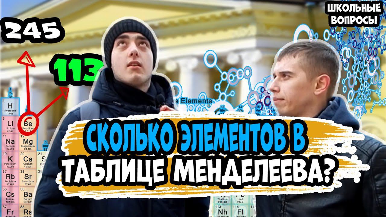 Школьные вопросы по химии который мы зададим прохожим, и посмотрим какой удивительное образование по Химии сегодня. А мы начинаем. Школьные вопросы по химии, как сейчас, ее сдают. У нас Школьные вопросы очень сложные или нет вы как думаете. Вопросы по химии смотрите все ниже там так же есть ответы. Какое сейчас удивительное образование и так же образование по Химии. Я раздаю деньги и это такая жиза. Ответь на этот вопрос и ты знаешь что будет, а вот у нас такие школьные вопросы,и на такие школьныевопросы мало кто сможет ответить. Школьные вопросы на улите на самом они не5 глупых вопросов, а вопросы с небольшим подвохом школьники отвечают и думаю что им нравится. Школьные вопросы на последний звонок у нас не вышла задать так как была непогода и Химия очень важно, основы химии какие сейчас в школе. Химия очень важный предмет, как можно выучить химия с нуля, а на самом деле химия просто. Школьные вопросы по химии, и как сейчас сдают егэ и егэ по химии, отвечают на школьные вопросы подростки всегда на улице, ответы на школьные вопросы мы фиксируем сразу, и какое сейчас задания егэ по химии и вариант егэ по химии можно выбрать и сразу решить, знания важны всегда. Вопросы 1. Кто создал таблицу Менделеева? Ответ: Менделеев 2. Самый распространённый химический элемент во Вселенной? Ответ: водород 3. Сколько агрегатных состояний веществ и перечислить их? Ответ: 4 (твёрдое, жидкое, газообразное, плазма) 4. Сколько элементов в таблице Менделеева? Ответ : 118 5. Какой элемент используется при отбеливании белья? Ответ: Хлор Подпишись на канал, все смешные моменты здесь https://www.youtube.com/channel/UCEjNIUn0rg7qpZpLfpxdj6A Школьные вопросы и не только. Я в соц. сетях: ◆ ВКонтакте: https://vk.com/gurev66 ◆ Инстаграм: https://www.instagram.com/gurev_66/ ◆ Тикток: https://www.tiktok.com/@gurev66?lang=ru Сотрудничество и реклама: пишите в соцсети #Школьныевопросы #Gurev66 #Вопросыпо #Школьныевопросыпохимии #вопросыпохимии #GUREV66