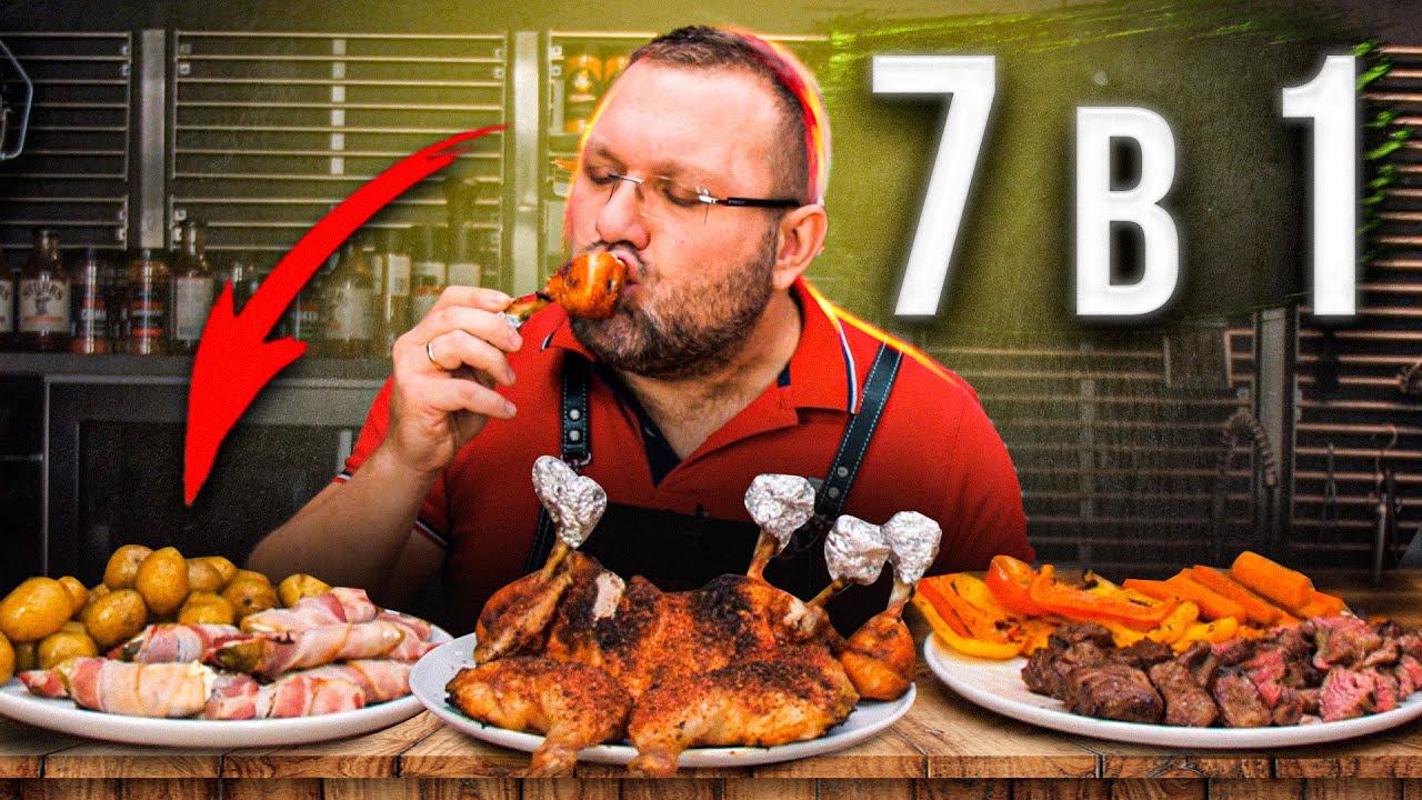 Как быстро накрыть стол с помощью ГРИЛЯ (7 в 1) : Стейк, шашлык, курица, лолипопс, овощи...