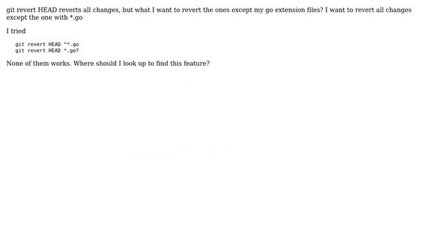 git revert changes except go extension files Helpful? Please support me on Patreon: https://www.patreon.com/roelvandepaar With thanks & praise to God, and with thanks to the many people who have made this project possible! | Content (except music & images) licensed under cc by-sa 3.0 | Music: https://www.bensound.com/royalty-free-music | Images: https://stocksnap.io/license & others | With thanks to user Sathyajith Bhat (https://superuser.com/users/4377), user Federico (https://superuser.com/users/150344), user EPSILONsdfsdfdsf (https://superuser.com/users/266441), and the Stack Exchange Network (http://superuser.com/questions/664602). Trademarks are property of their respective owners. Disclaimer: All information is provided "AS IS" without warranty of any kind. You are responsible for your own actions. Please contact me if anything is amiss at Roel D.OT VandePaar A.T gmail.com.