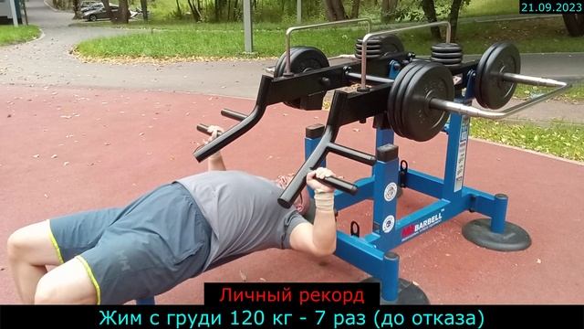 21.09.2023 - Жим с груди 120 кг - 7 раз (до отказа)