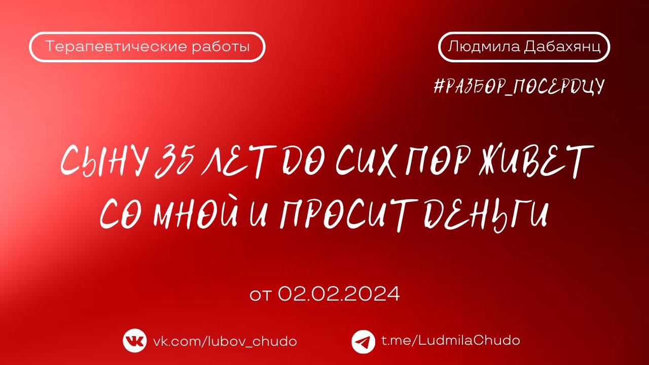 Сыну 35 лет до сих пор живет со мной и просит деньги | #разбор_поСердцу | от 02.02.24