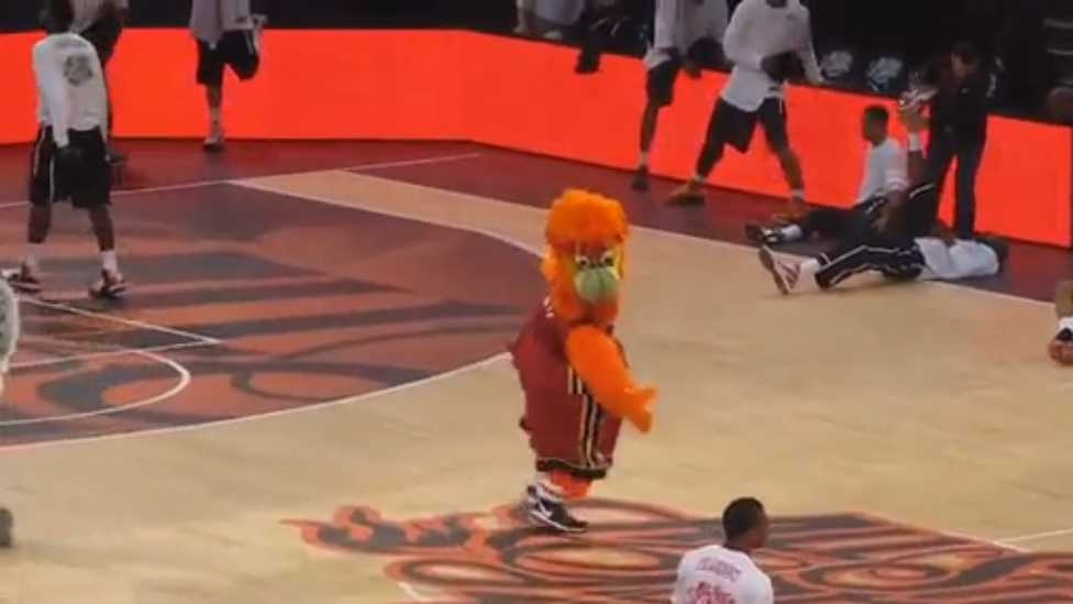 Вот так талисманы разогревают зрителей во время игры.