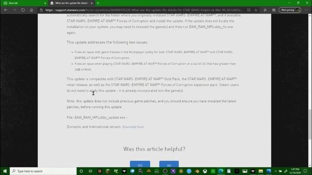 How to get Empire At War Forces of Corruption to work on a windows 7/8/10