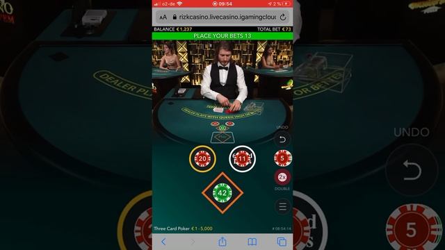 Little three card poker session with a big unexpected win (straight flush)