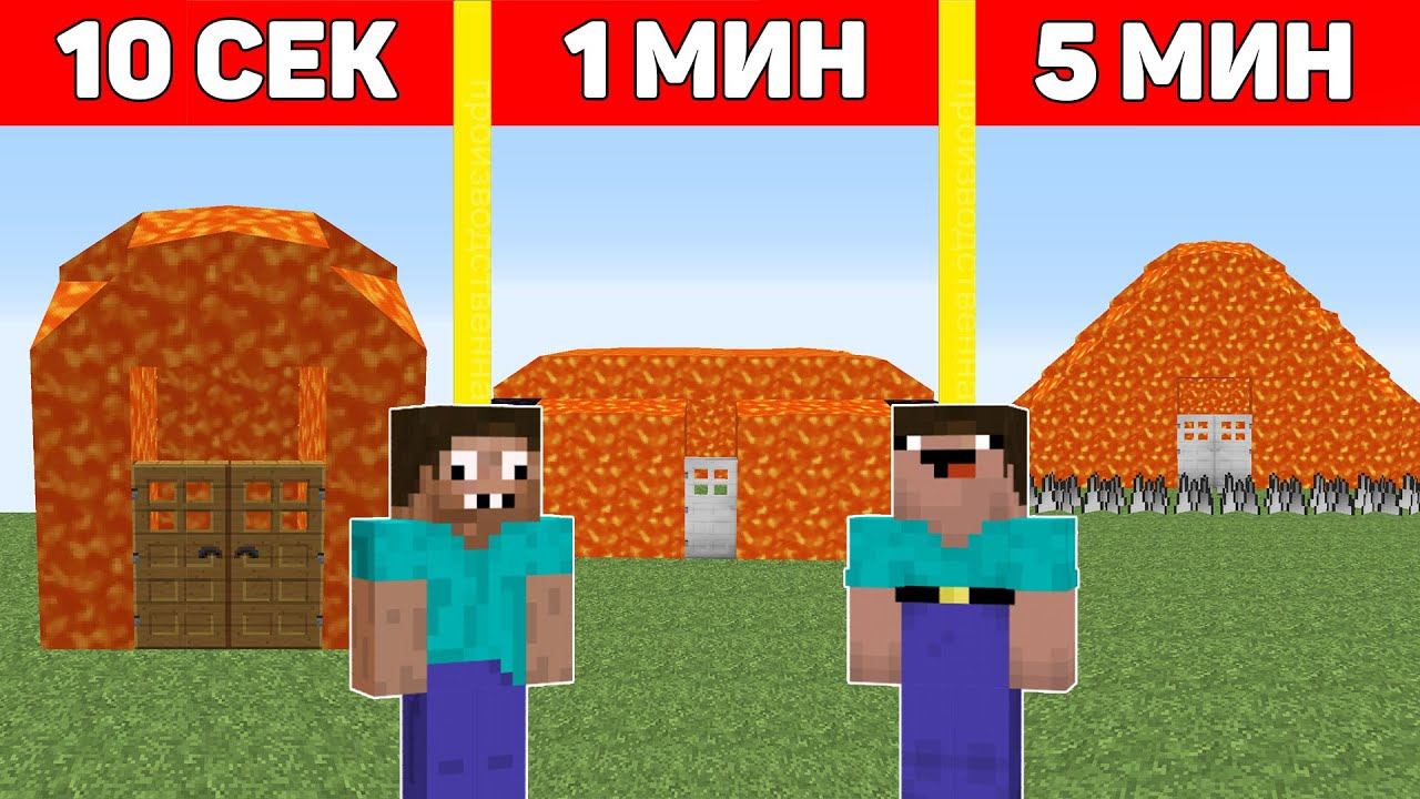 НУБ И ПРО СТРОЯТ ДОМ ИЗ ЛАВЫ В МАЙНКРАФТ ЗА 10 СЕКУНД/ 1 МИНУТУ/ 5 МИНУТ ! БИТВА СТРОИТЕЛЕЙ ТРОЛЛИНГ