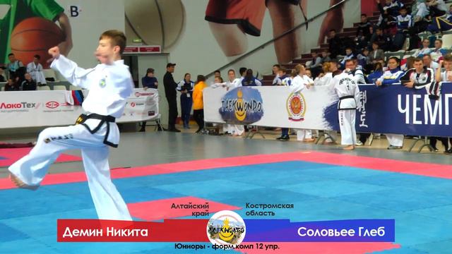 Чемпионат России по тхэквондо-2019. Республика Бурятия, Улан-Удэ. 7-10 февраля 2019г. Демин Никита (Алтайский край) - Соловьев Глеб (Костромская область) Юниоры/Форм.компл. 12 упр. ФИНАЛ.