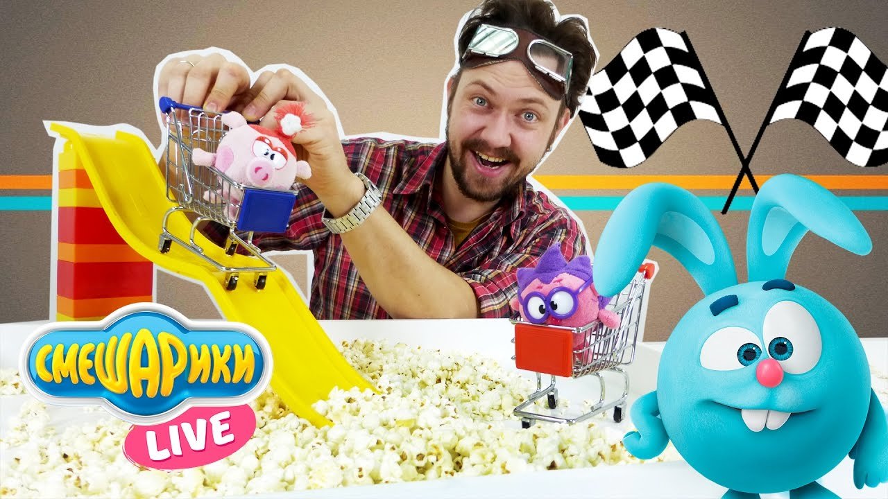 Новое видео для детей на канале СМЕШАРИКИ live про супер ГОНКИ на тележках в супермаркете! Пока Ежик покупал продукты, Крош и Алекс ГАРАЖ решили устроить настоящие гонки на тележках! Алекс предложил даже построить целую трассу! Смотри, что получилось у наших героев, и пиши в комментариях, какой элемент трассы ты бы хотел добавить! Смотреть все видео Смешарики Live: https://www.youtube.com/channel/UCy15c4beE539pcPFt4-UrHg Лучшие видео со Смешариками: https://www.youtube.com/watch?v=VgcCaFR9ABU&list=PLm_VvCP2z8lzbukJ5CHO2FXC3oUPcBkSZ Еще больше видео для детей про игрушки на нашем канале СПАСАТЕЛИ ИГРУШЕК: https://www.youtube.com/channel/UC9-eWn5roqlMDYVVWgt7XQA Чтобы не пропустить другие приключения, подписывайся на наш канал ИГРОМУЛЬТИК: https://www.youtube.com/channel/UC9RFqPpLn4BOZOn7J7kUThA Смотрите нас на Фейсбуке! https://www.facebook.com/4ScreensShow Присоединяйтесь к нам ВКонтакте! https://vk.com/club132423271 Следите за нами в Твиттере! https://twitter.com/4Screens_Studio Посети наш Instagram! https://www.instagram.com/4screensstudio/